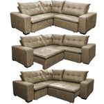 Sofa De Canto Retrátil E Reclinável Com Molas Cama Inbox Oklahoma 2,60m X 2,60m Velusoft Castor