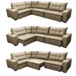 Sofa De Canto Retrátil E Reclinável Com Molas Cama Inbox Oklahoma 3,65x2,51 Ou 2,51x3,65 Castor
