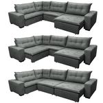 Sofa De Canto Retrátil E Reclinável Com Molas Cama Inbox Oklahoma 3,65x2,51 Ou 2,51x3,65 Cinza