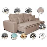 Sofa Retrátil E Reclinável Com Molas Cama Inbox Premium 2,12m Tecido Em Linho Bege Escuro
