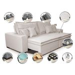 Sofa Retrátil E Reclinável Com Molas Cama Inbox Premium 3,12m Tecido Em Linho Bege Claro